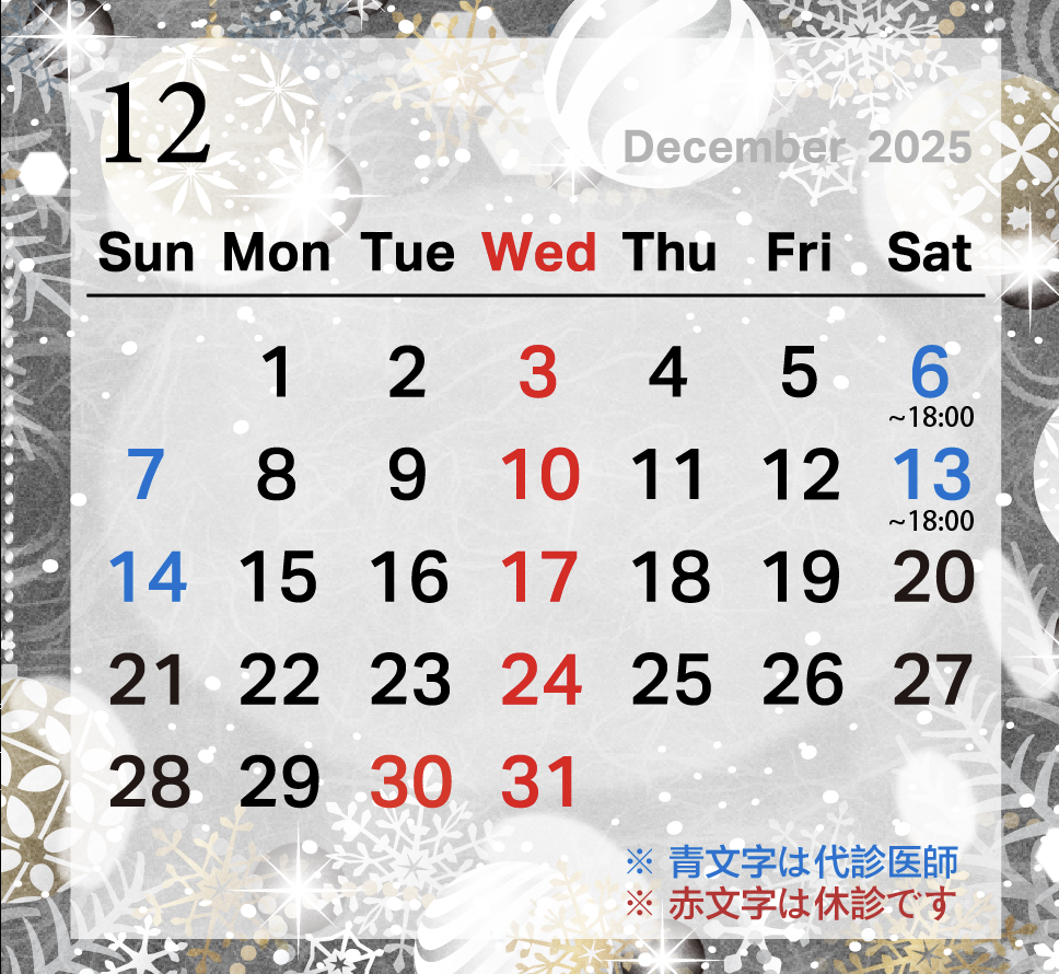We will be closed for the winter from December 30th (Tuesday) to January 4th (Sunday).